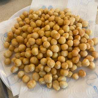7-Quando assumeranno un bel colorito dorato, preleva gli struffoli. Man mano che sono pronti, trasferiscili su un piatto rivestito con carta assorbente da cucina e lasciali scolare per bene