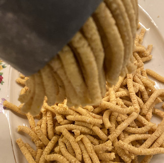 3-Con uno schiacciapatate dai buchi larghi inserire un po’ di impasto per volta e formare i passatelli