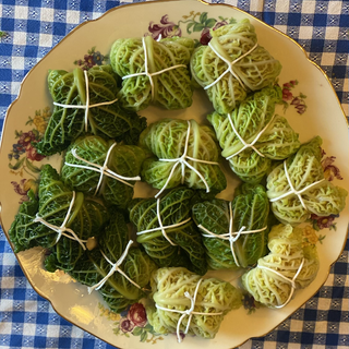 2.Pulire la verza e lessare le foglie per qualche minuto in acqua salata